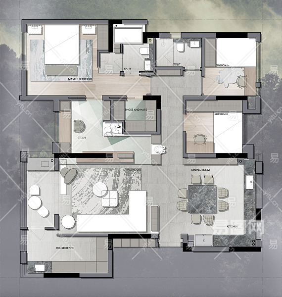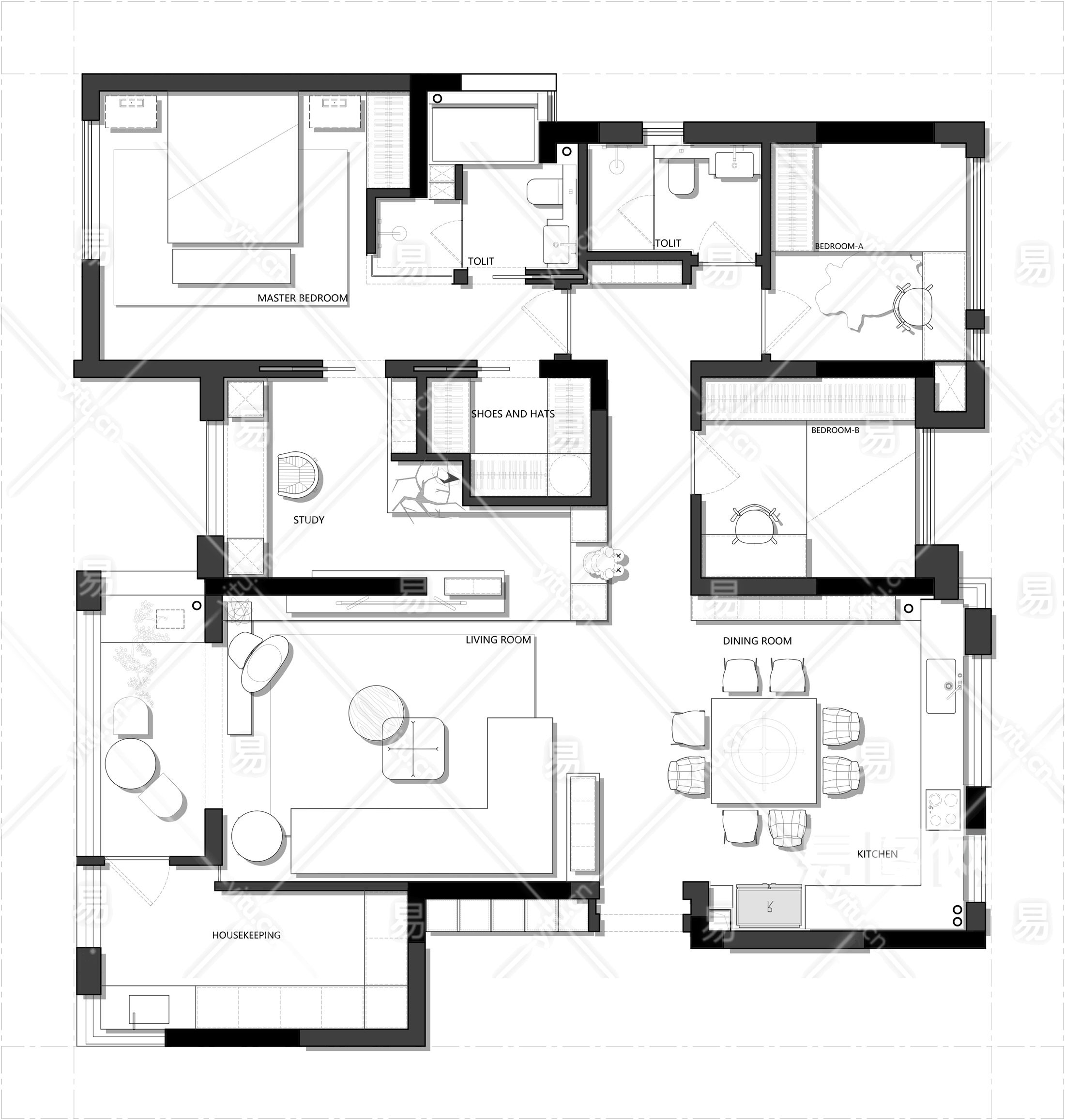 当前的位置:首页 > 室内CAD图纸 > cad > 建筑方案设计 > 居住建筑图纸 > 【CAD图纸】150㎡三居室CAD平面方案+PSD彩平