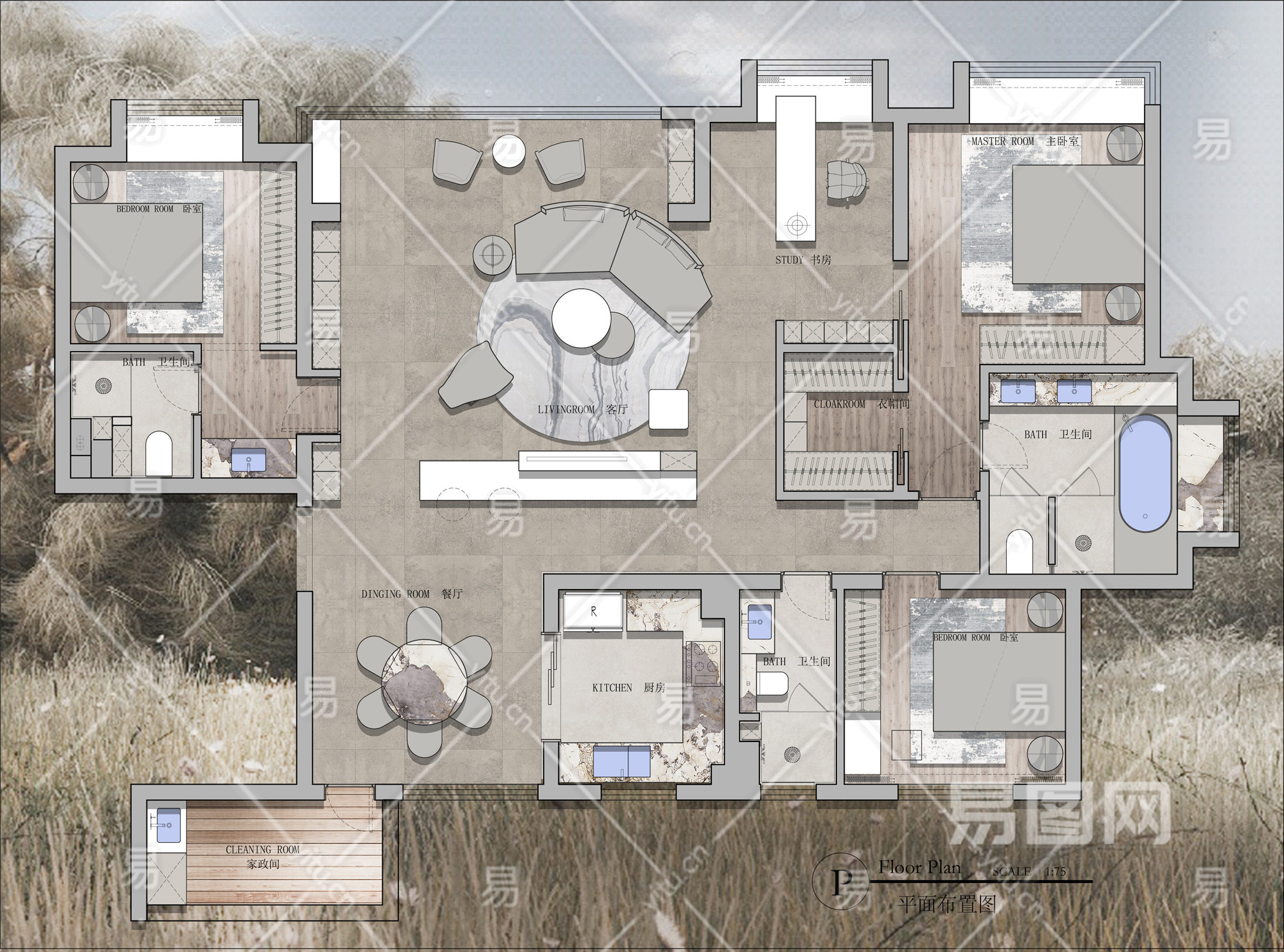 当前的位置:首页 > 室内CAD图纸 > cad > 建筑方案设计 > 居住建筑图纸 > 【CAD图纸】153㎡三居室CAD平面方案+PSD彩平