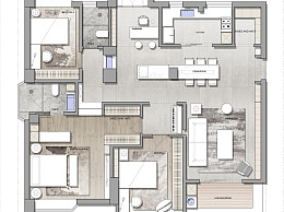 【CAD图纸】164㎡三居室CAD平面方案+PSD彩平