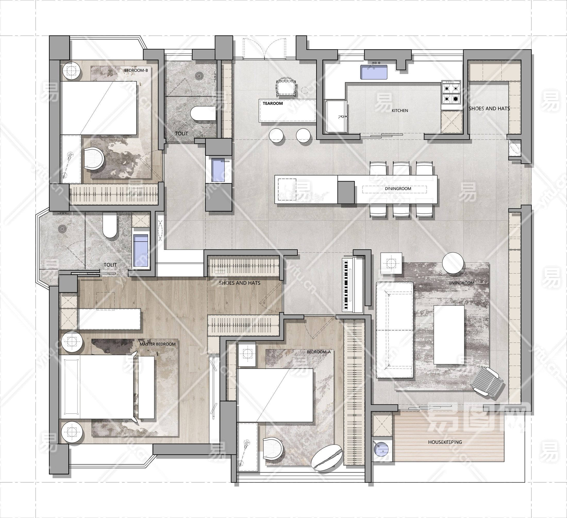 当前的位置:首页 > 室内CAD图纸 > cad > 建筑方案设计 > 居住建筑图纸 > 【CAD图纸】164㎡三居室CAD平面方案+PSD彩平