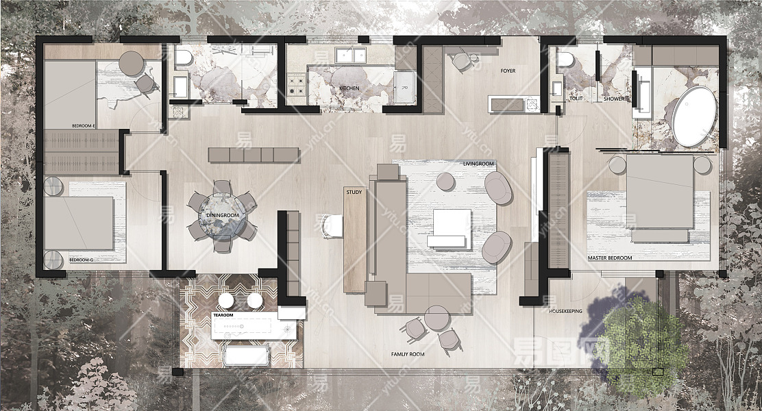 【CAD图纸】170㎡三居CAD平面方案+PSD彩平