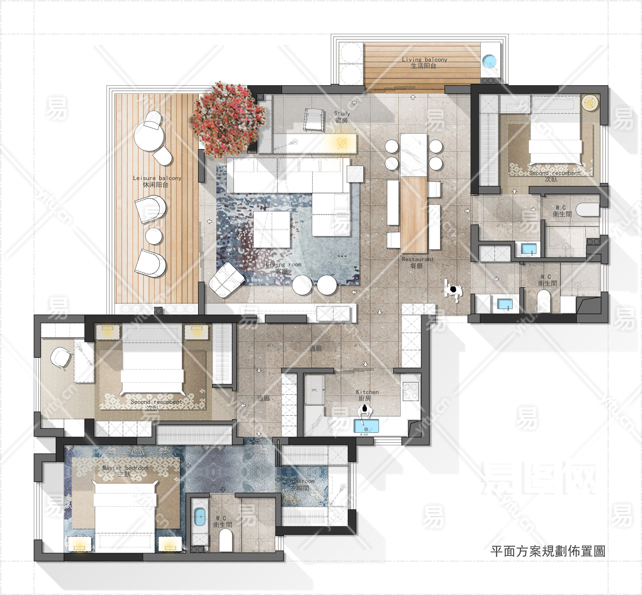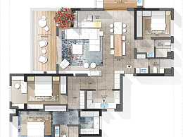【CAD图纸】190㎡三居室CAD平面方案+PSD彩平
