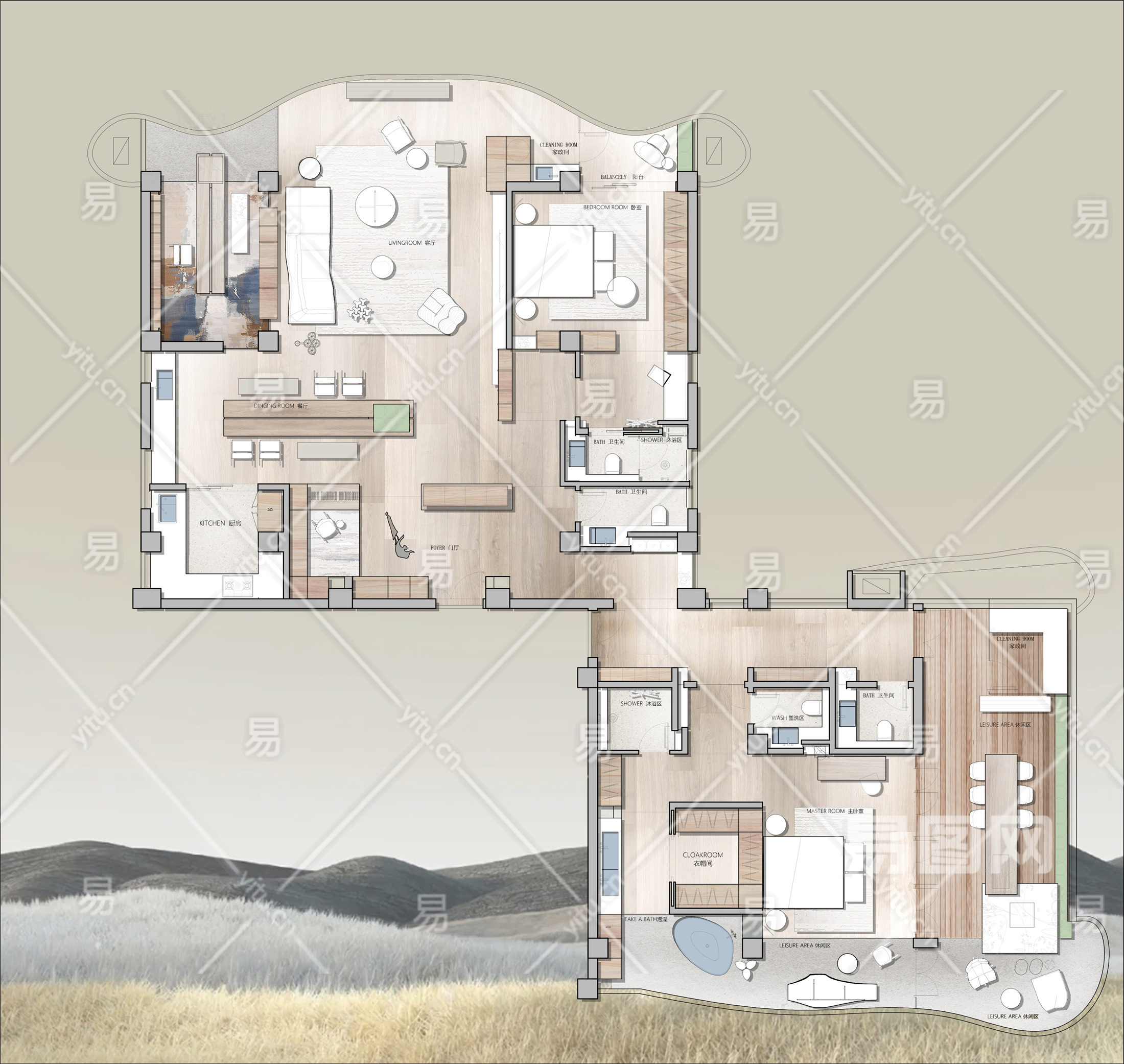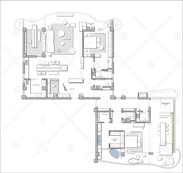 当前的位置:首页 > 室内CAD图纸 > cad > 建筑方案设计 > 居住建筑图纸 > 【CAD图纸】300㎡两居室CAD平面方案+PSD彩平