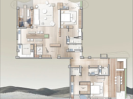 【CAD图纸】300㎡两居室CAD平面方案+PSD彩平