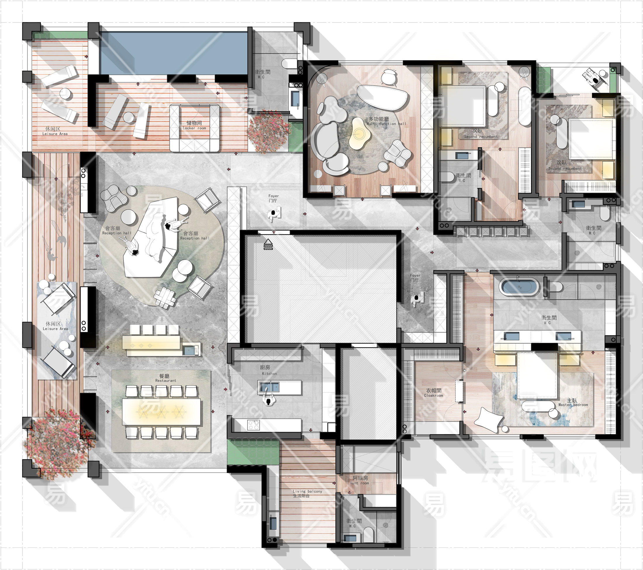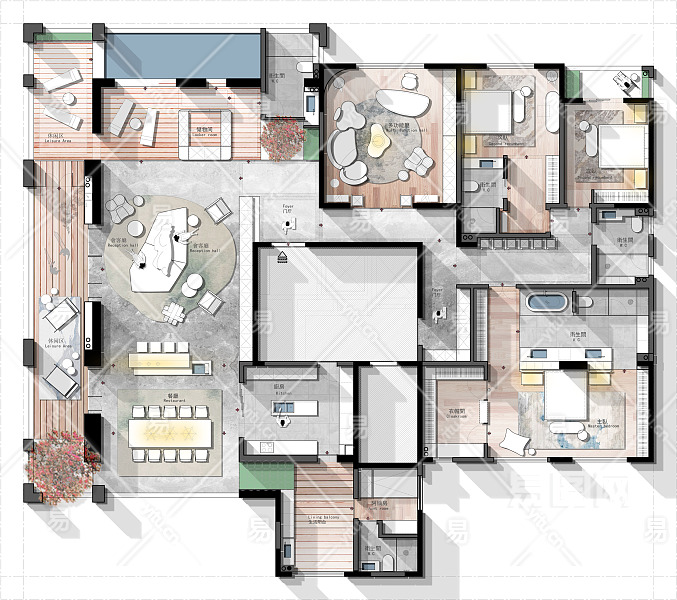 当前的位置:首页 > 室内CAD图纸 > cad > 建筑方案设计 > 居住建筑图纸 > 【CAD图纸】500㎡三居室大平层CAD平面方案+PSD彩平
