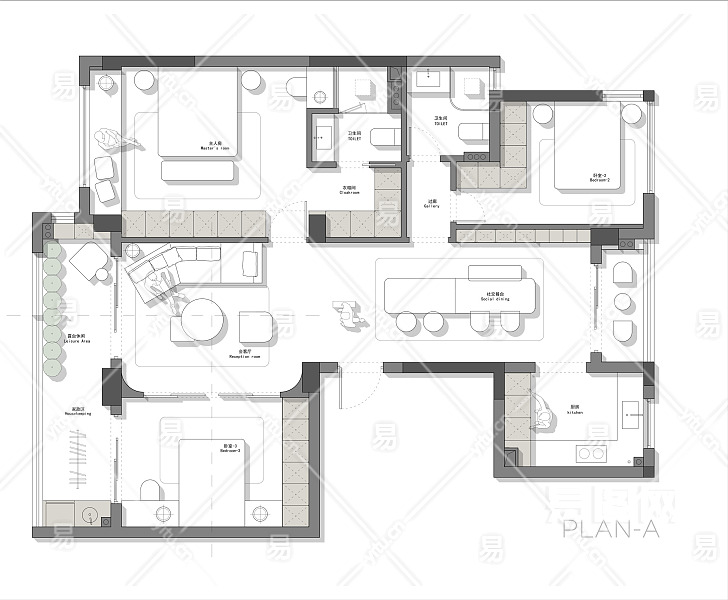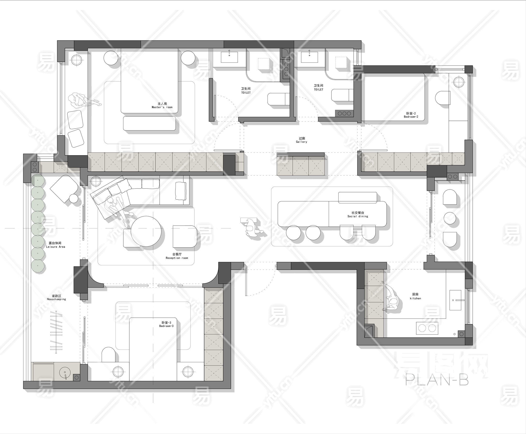 【CAD图纸】128㎡三室常规户型创新CAD平面方案+PSD彩平