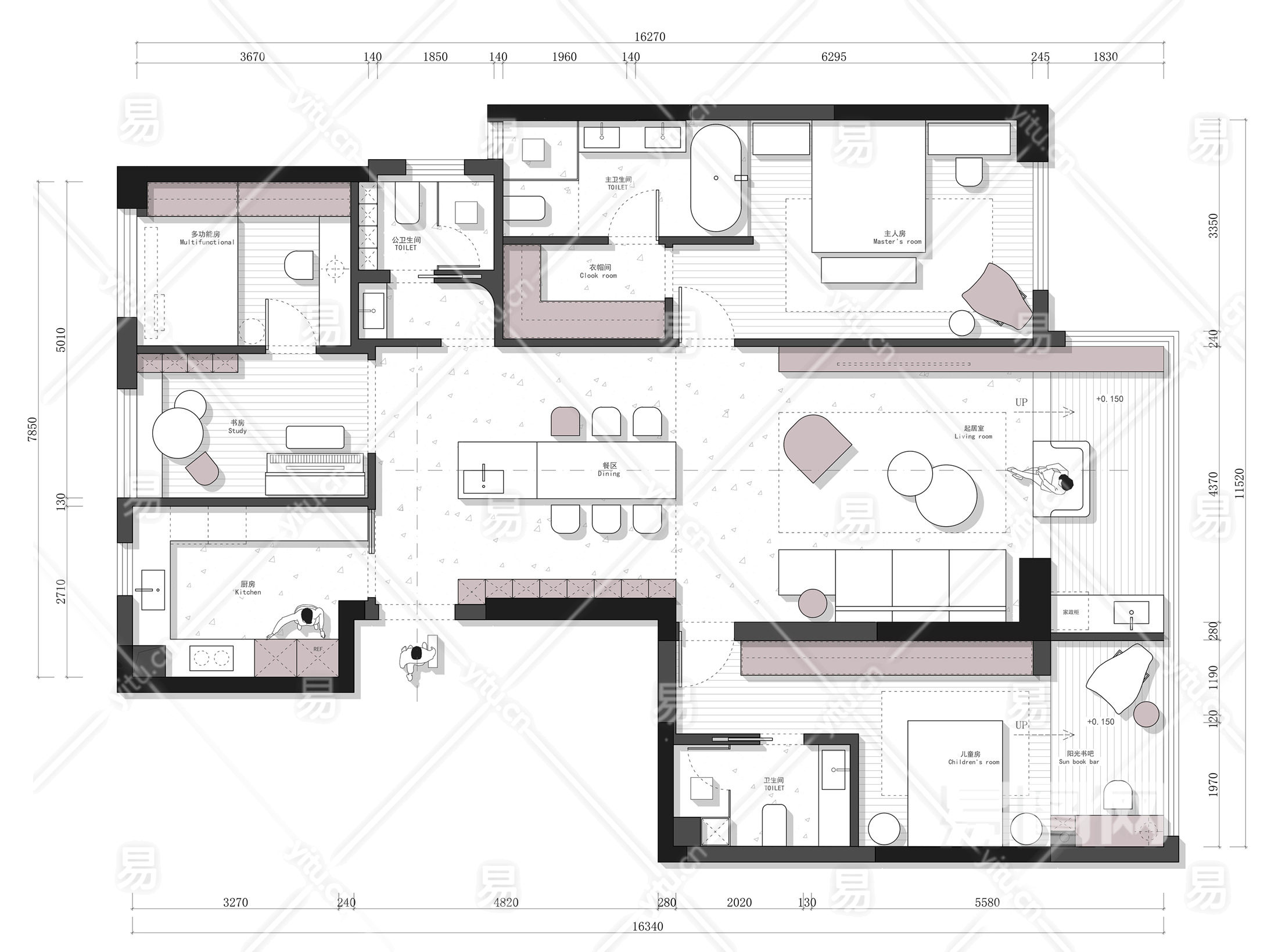 当前的位置:首页 > 室内CAD图纸 > cad > 建筑方案设计 > 居住建筑图纸 > 【CAD图纸】160㎡细节优化三房CAD平面方案+PSD彩平