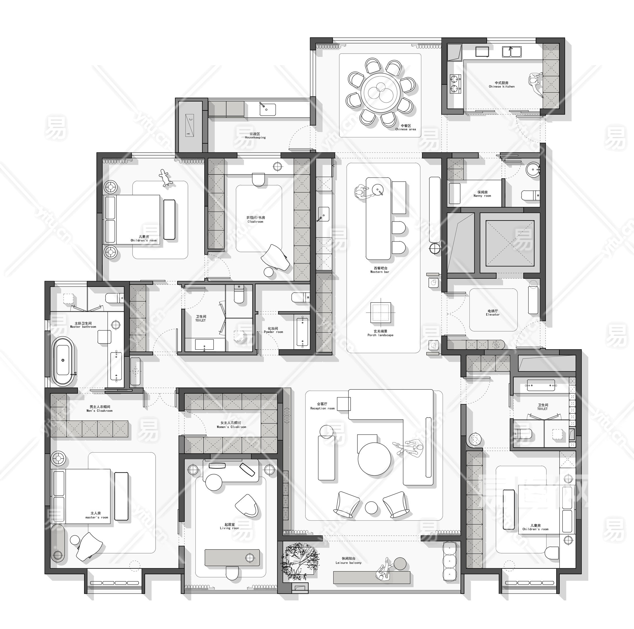 当前的位置:首页 > 室内CAD图纸 > cad > 建筑方案设计 > 居住建筑图纸 > 【CAD图纸】300㎡大平层 三居CAD平面方案+PSD彩平