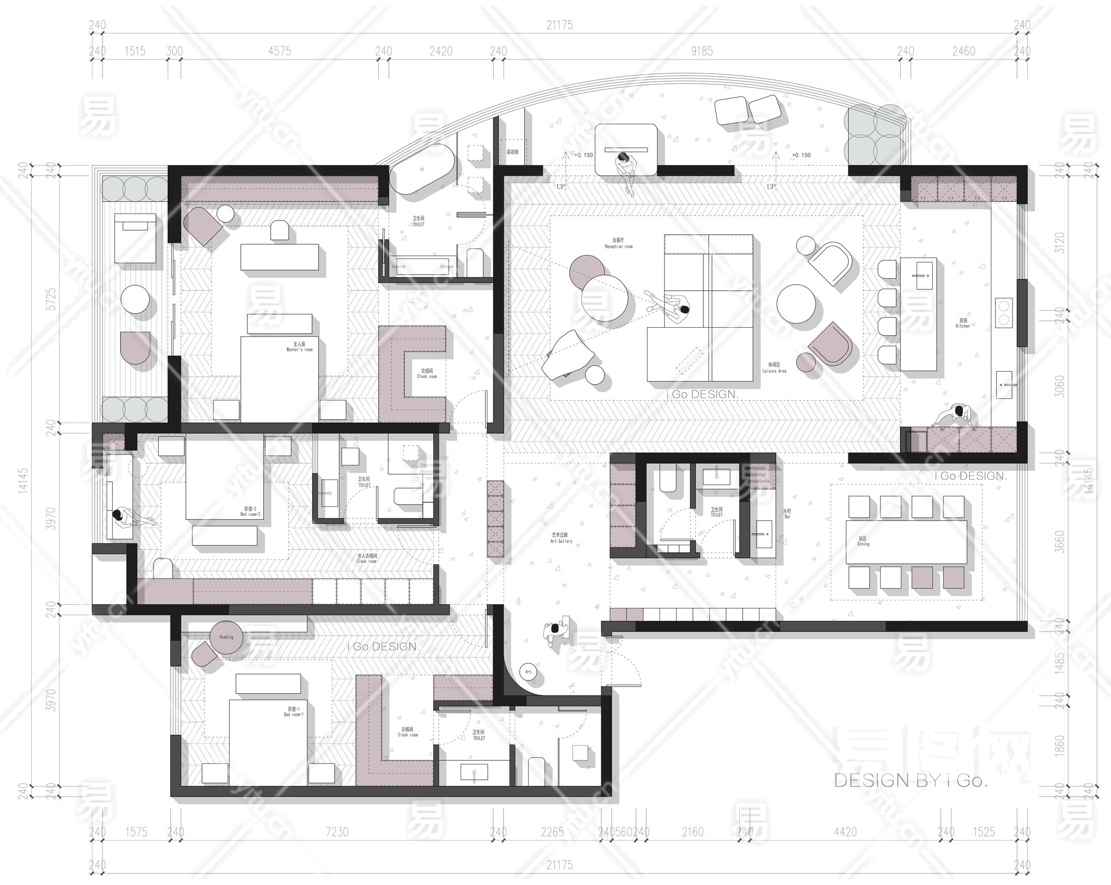 当前的位置:首页 > 室内CAD图纸 > cad > 建筑方案设计 > 居住建筑图纸 > 【CAD图纸】300㎡大平层CAD平面方案+PSD彩平