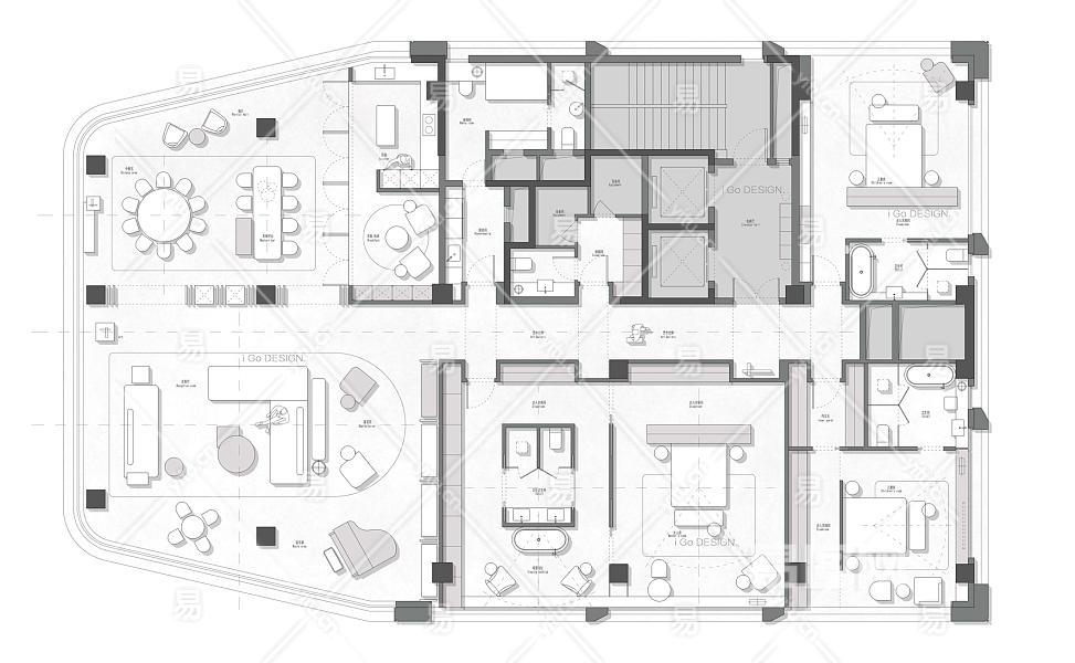 当前的位置:首页 > 室内CAD图纸 > cad > 建筑方案设计 > 居住建筑图纸 > 【CAD图纸】536㎡豪宅大平层CAD平面方案+PSD彩平