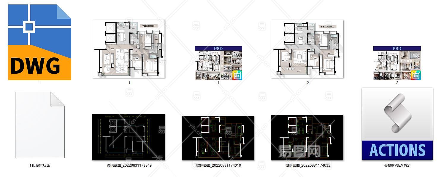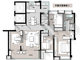 【CAD图纸】162㎡三居室大平层CAD平面方案+PSD彩平