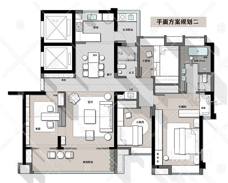 当前的位置:首页 > 室内CAD图纸 > cad > 建筑方案设计 > 居住建筑图纸 > 【CAD图纸】162㎡三居室大平层CAD平面方案+PSD彩平