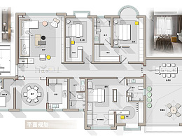 【CAD图纸】三居室大平层CAD设计方案+PSD彩平