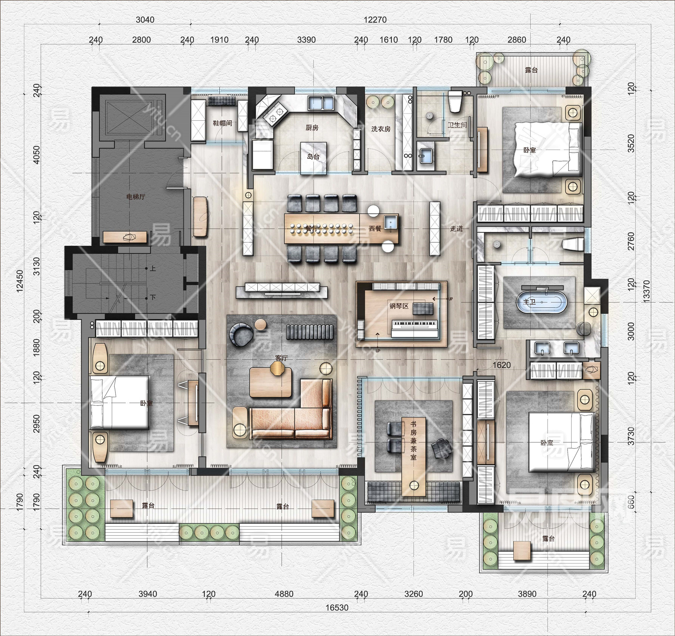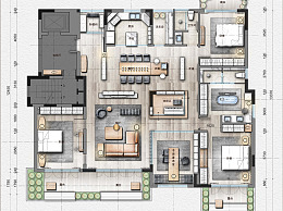 【CAD图纸】两居室大平层CAD平面方案+PSD彩平