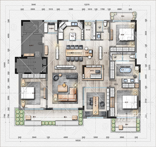 当前的位置:首页 > 室内CAD图纸 > cad > 建筑方案设计 > 居住建筑图纸 > 【CAD图纸】两居室大平层CAD平面方案+PSD彩平