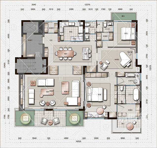 【CAD图纸】两居室大平层CAD平面设计方案+PSD彩平