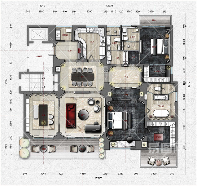 当前的位置:首页 > 室内CAD图纸 > cad > 建筑方案设计 > 居住建筑图纸 > 【CAD图纸】二居室大平层CAD平面方案+PSD彩平