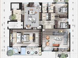 【CAD图纸】四居室大平层CAD平面方案+PSD彩平