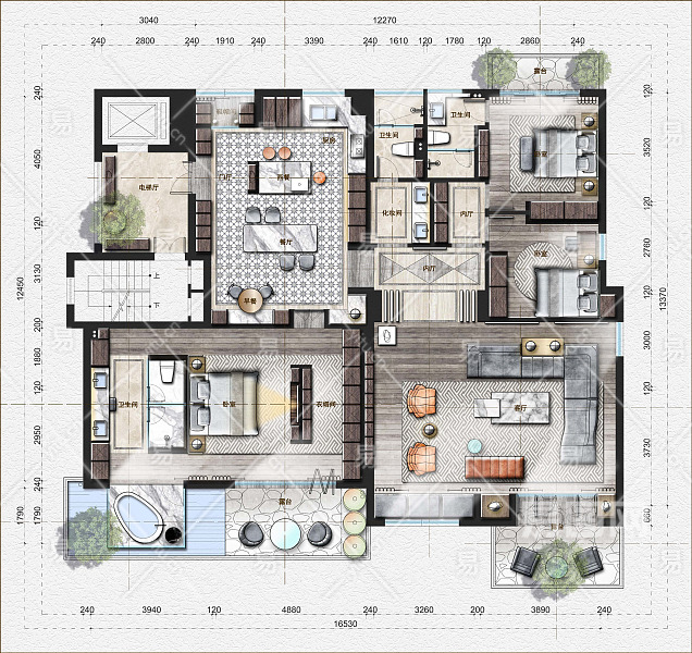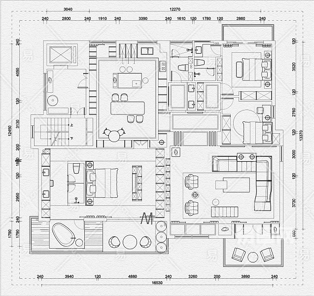 当前的位置:首页 > 室内CAD图纸 > cad > 建筑方案设计 > 居住建筑图纸 > 【CAD图纸】四居室大平层CAD平面方案+PSD彩平