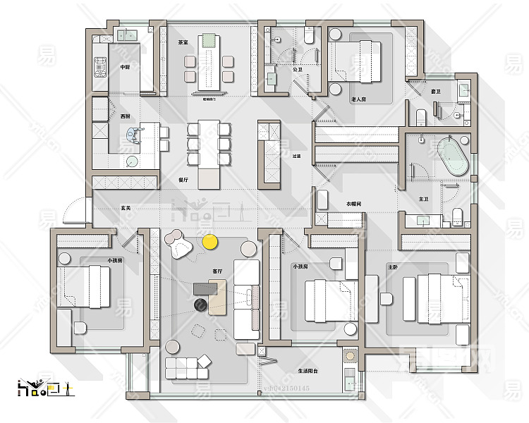 当前的位置:首页 > 室内CAD图纸 > cad > 建筑方案设计 > 居住建筑图纸 > 【CAD图纸】四居室大平层平面CAD方案+PSD彩平