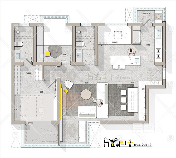 【CAD图纸】102㎡三版CAD平面方案+PSD彩平