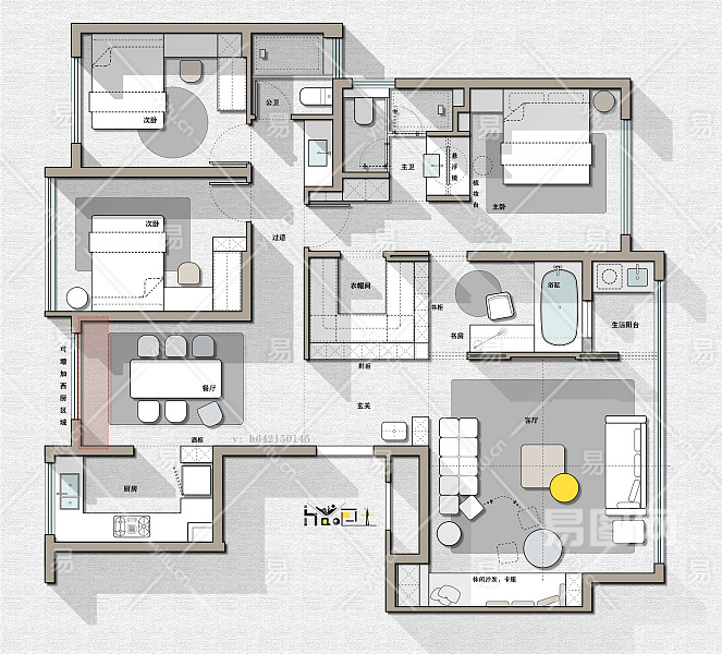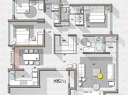 【CAD图纸】128㎡三居室CAD平面方案+PSD彩平