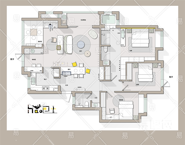 当前的位置:首页 > 室内CAD图纸 > cad > 建筑方案设计 > 居住建筑图纸 > 【CAD图纸】146㎡三居室家装CAD平面方案+PSD彩平