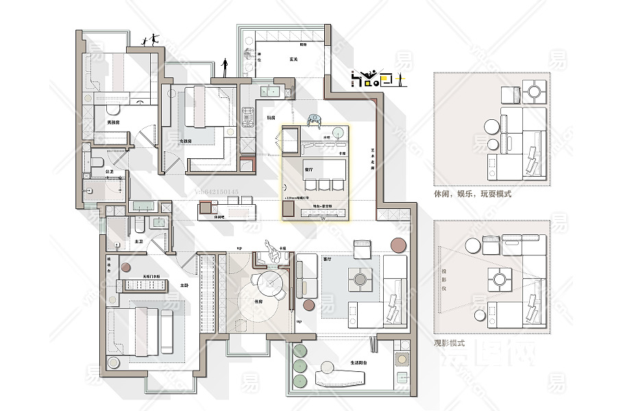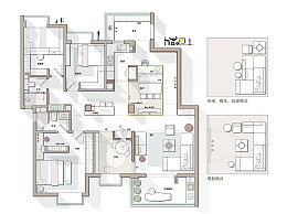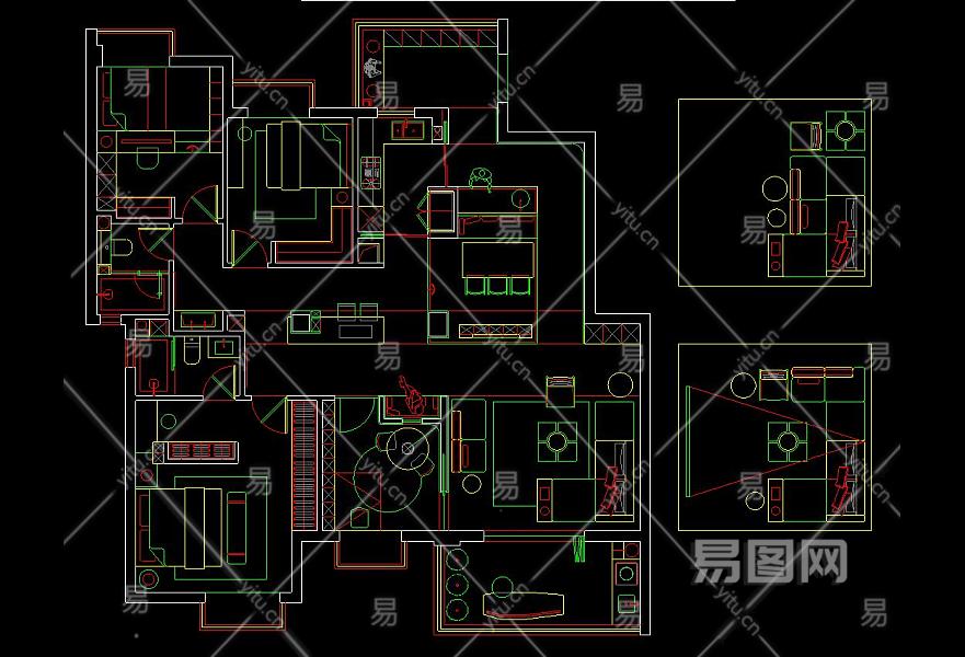 当前的位置:首页 > 室内CAD图纸 > cad > 建筑方案设计 > 居住建筑图纸 > 【CAD图纸】154㎡三居室家装CAD平面方案+PSD彩平