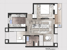 【CAD图纸】100㎡两居两版CAD平面方案+PSD彩平