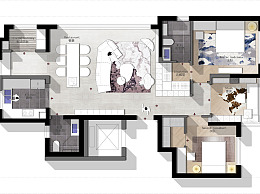 【CAD图纸】100㎡两居室两版CAD平面方案+PSD彩平