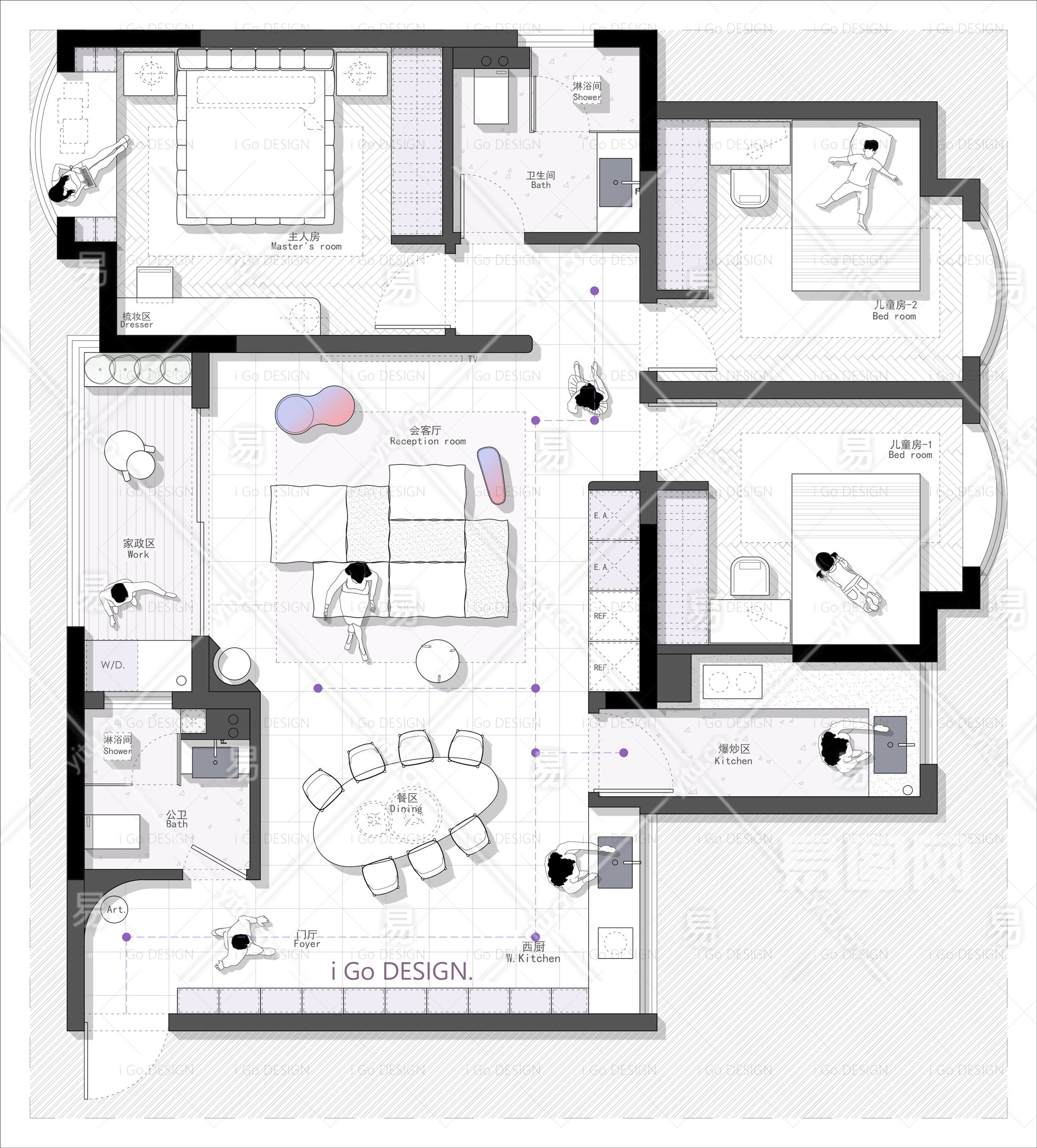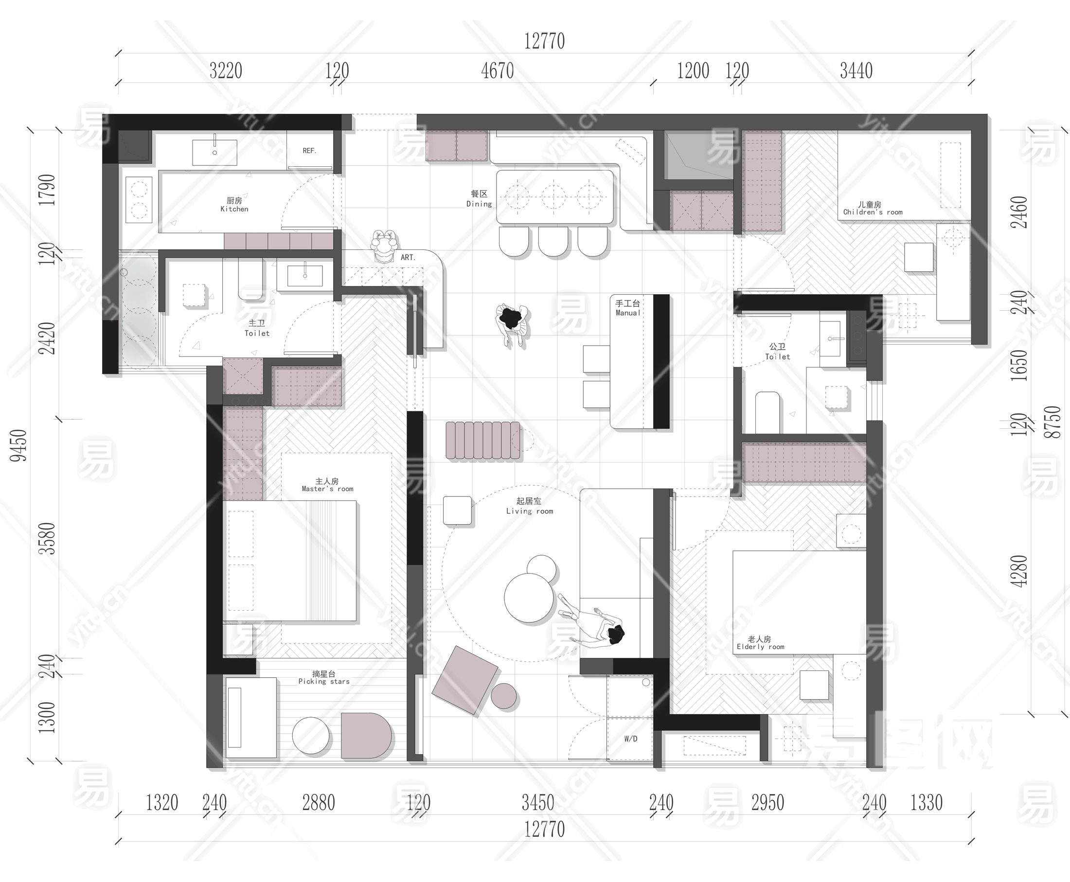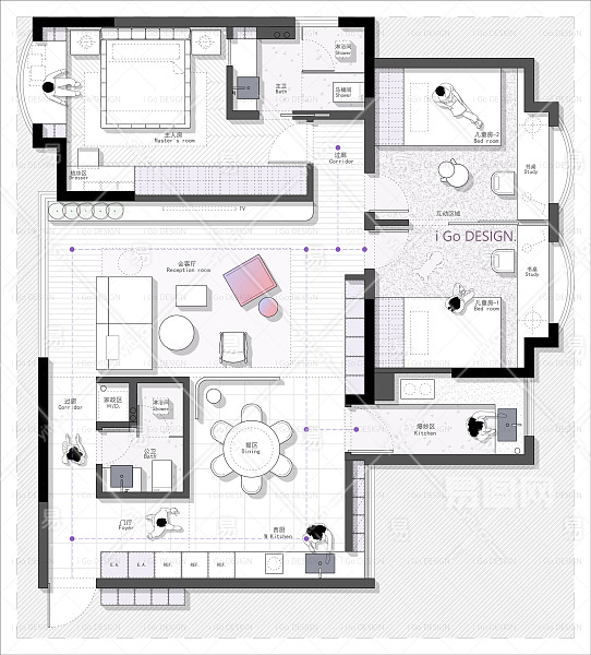 【CAD图纸】101㎡平层CAD平面方案+PSD彩平