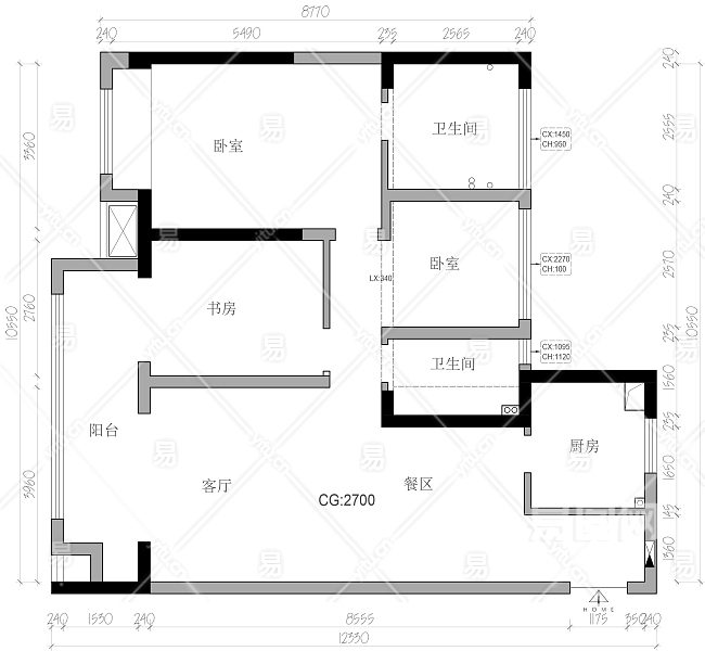 当前的位置:首页 > 室内CAD图纸 > cad > 建筑方案设计 > 居住建筑图纸 > 【CAD图纸】102㎡常规户型 2+1户型改造CAD平面方案+PSD彩平