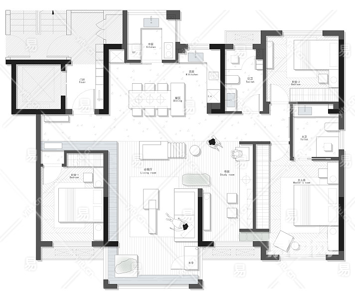【CAD图纸】120㎡平层CAD平面方案+PSD彩平