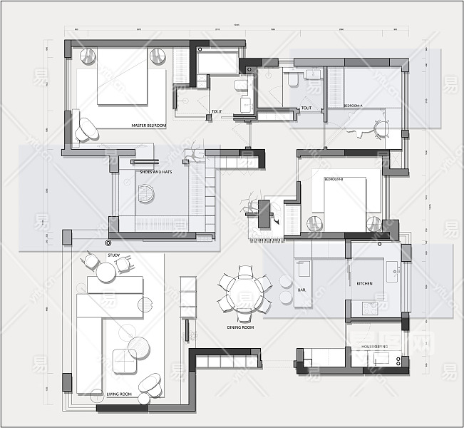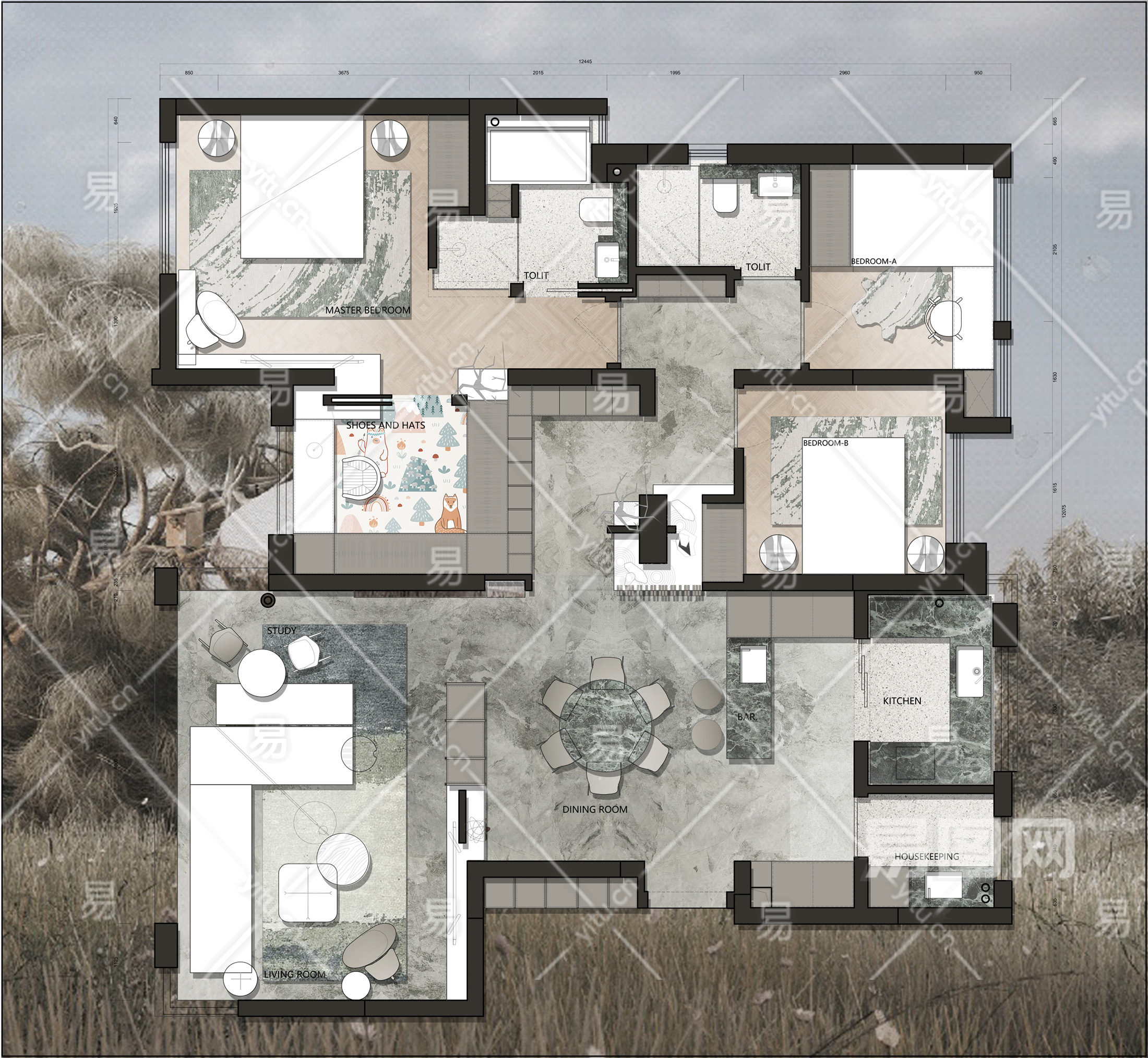 当前的位置:首页 > 室内CAD图纸 > cad > 建筑方案设计 > 居住建筑图纸 > 【CAD图纸】150㎡三居室CAD平面设计方案+PSD彩平