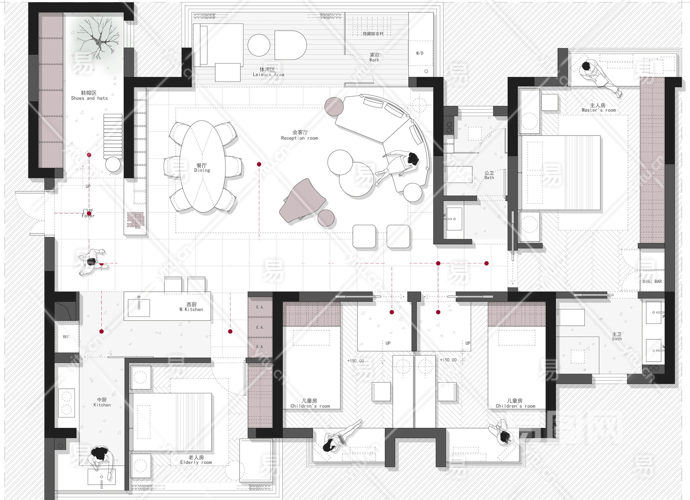 【CAD图纸】150㎡大平层CAD平面方案+PSD彩平