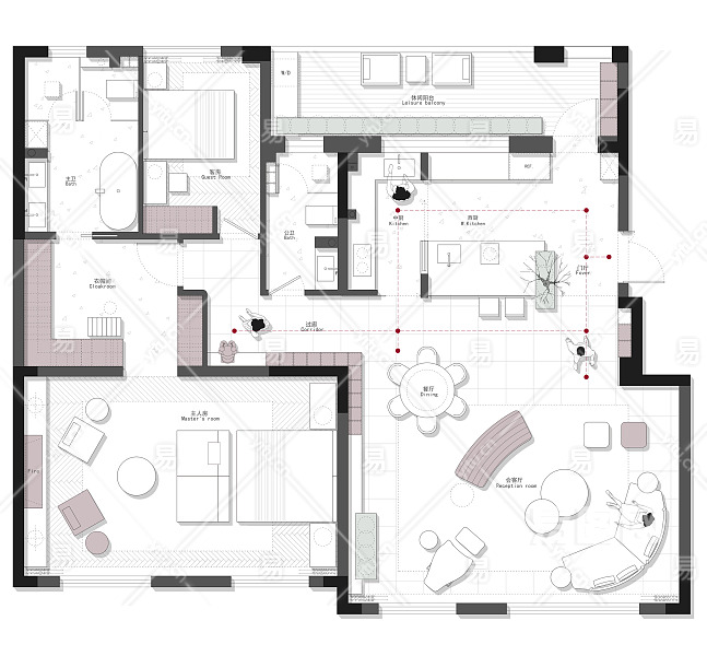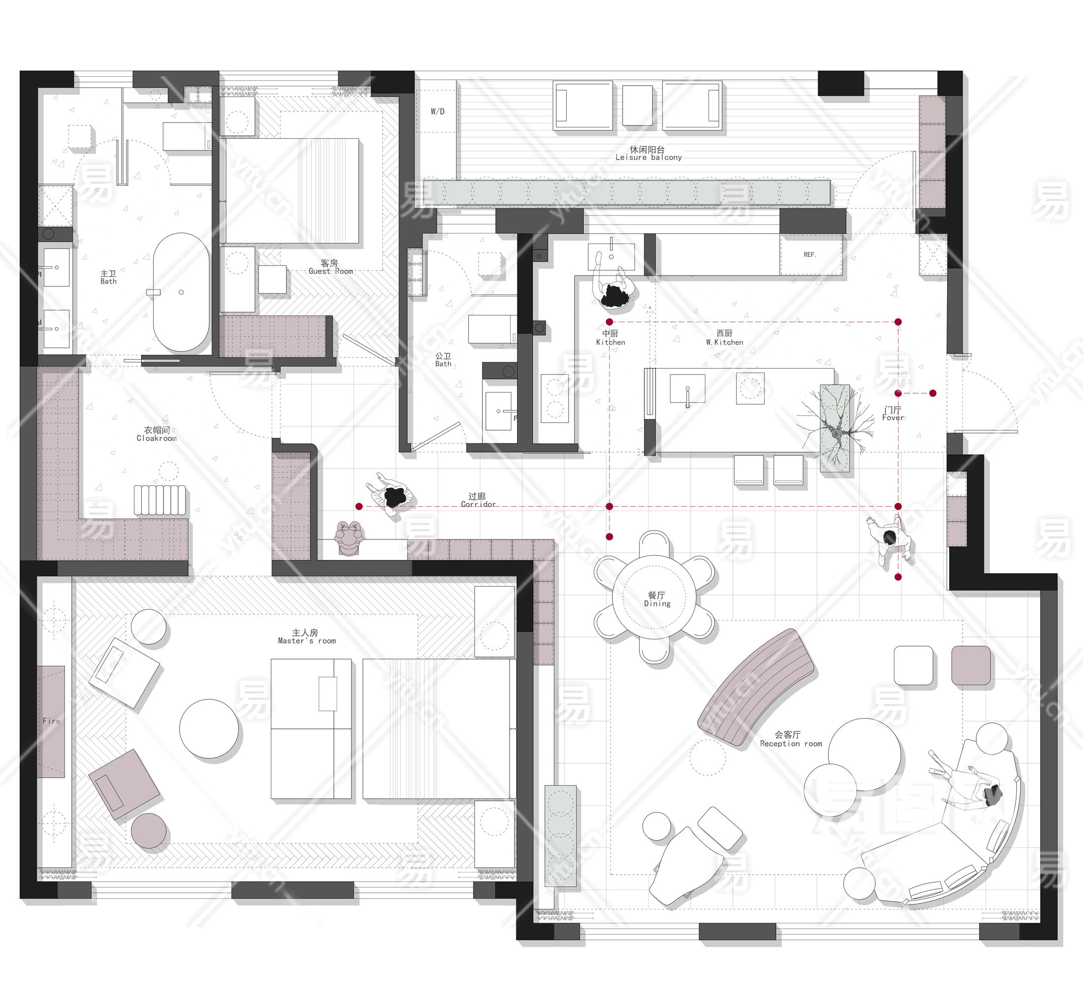 【CAD图纸】159㎡大平层CAD平面方案+PSD彩平