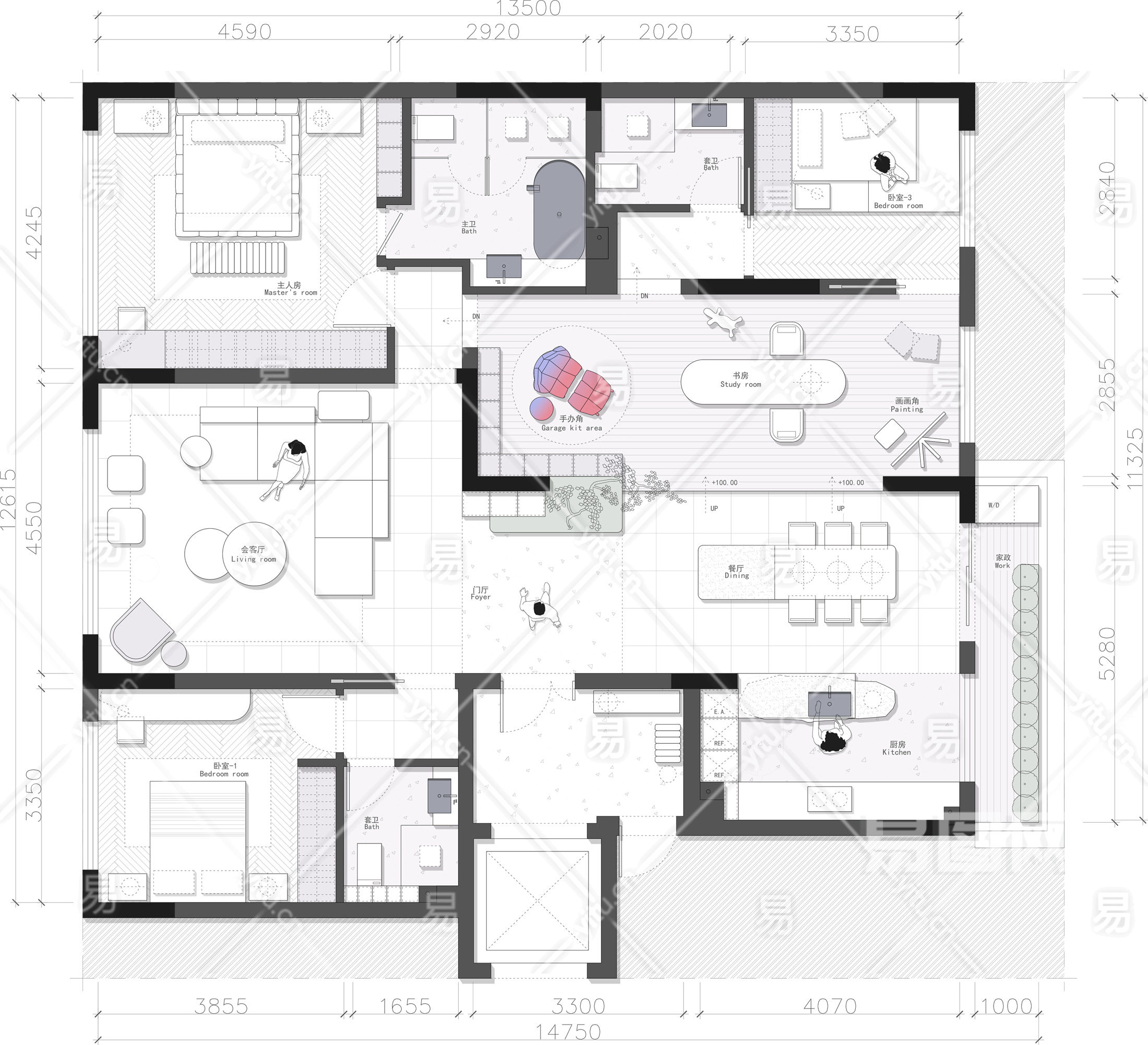 【CAD图纸】170㎡大平层CAD平面方案+PSD彩平