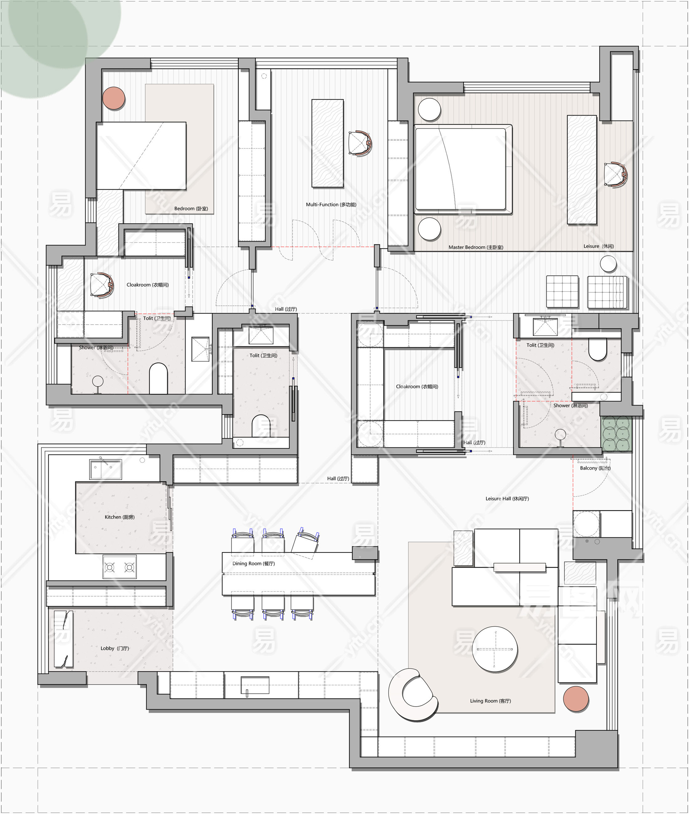 【CAD图纸】170㎡大平层家装CAD平面方案+PSD彩平