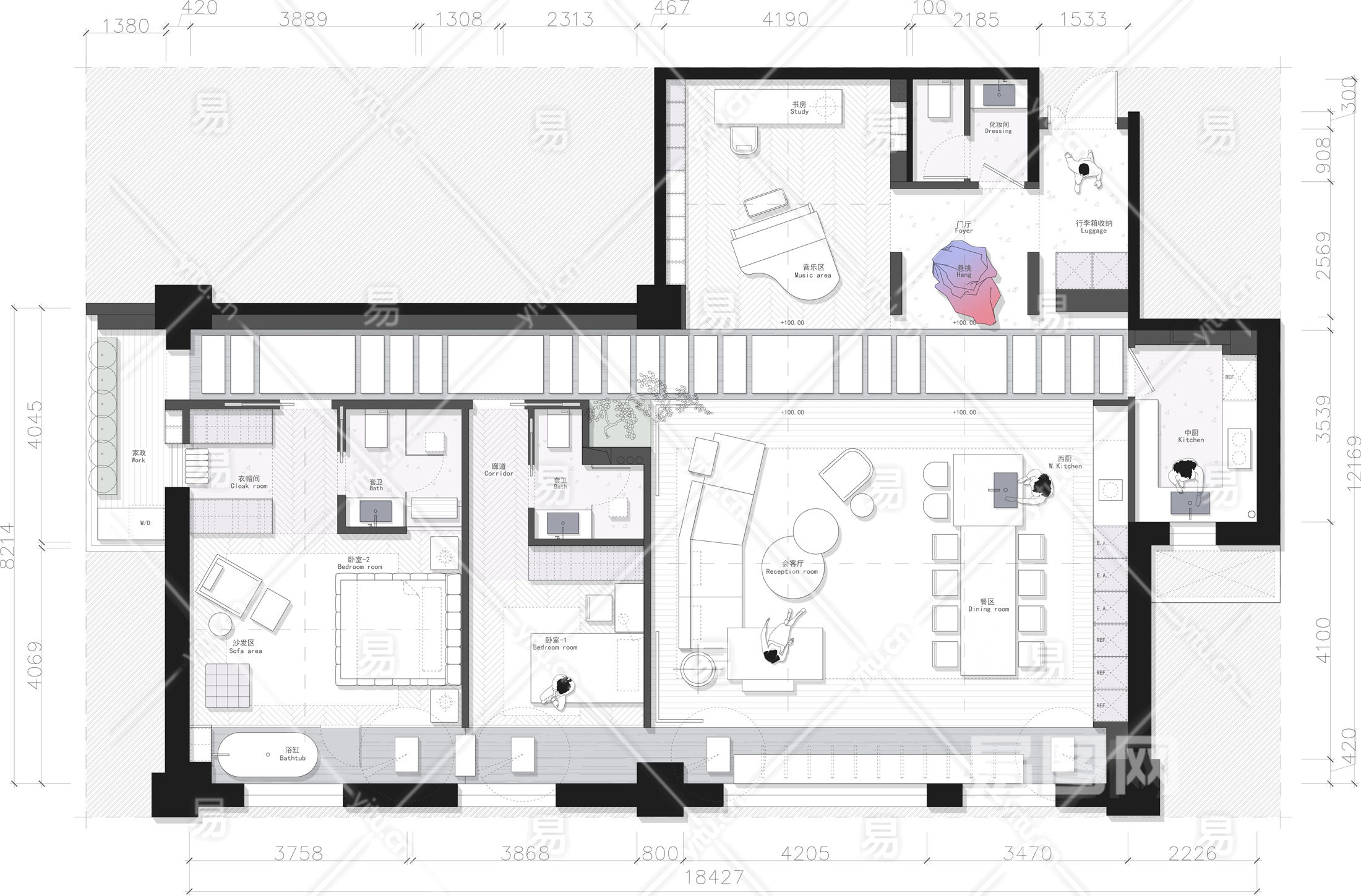 【CAD图纸】175㎡大平层CAD平面方案+PSD彩平