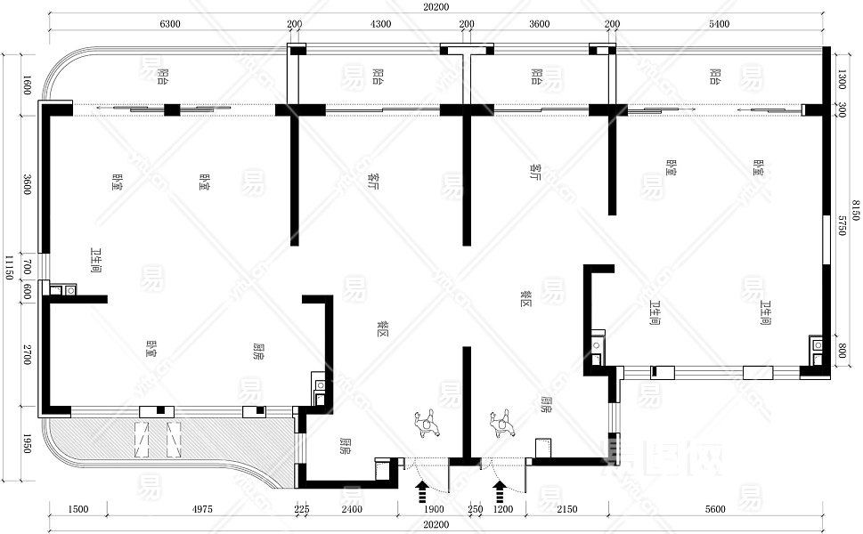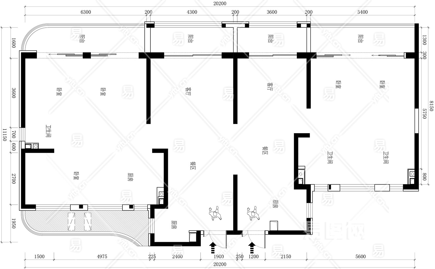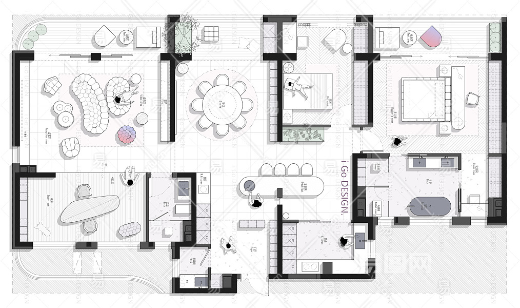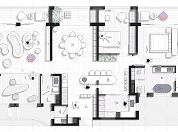 【CAD图纸】194㎡两户打通CAD平面方案+PSD彩平