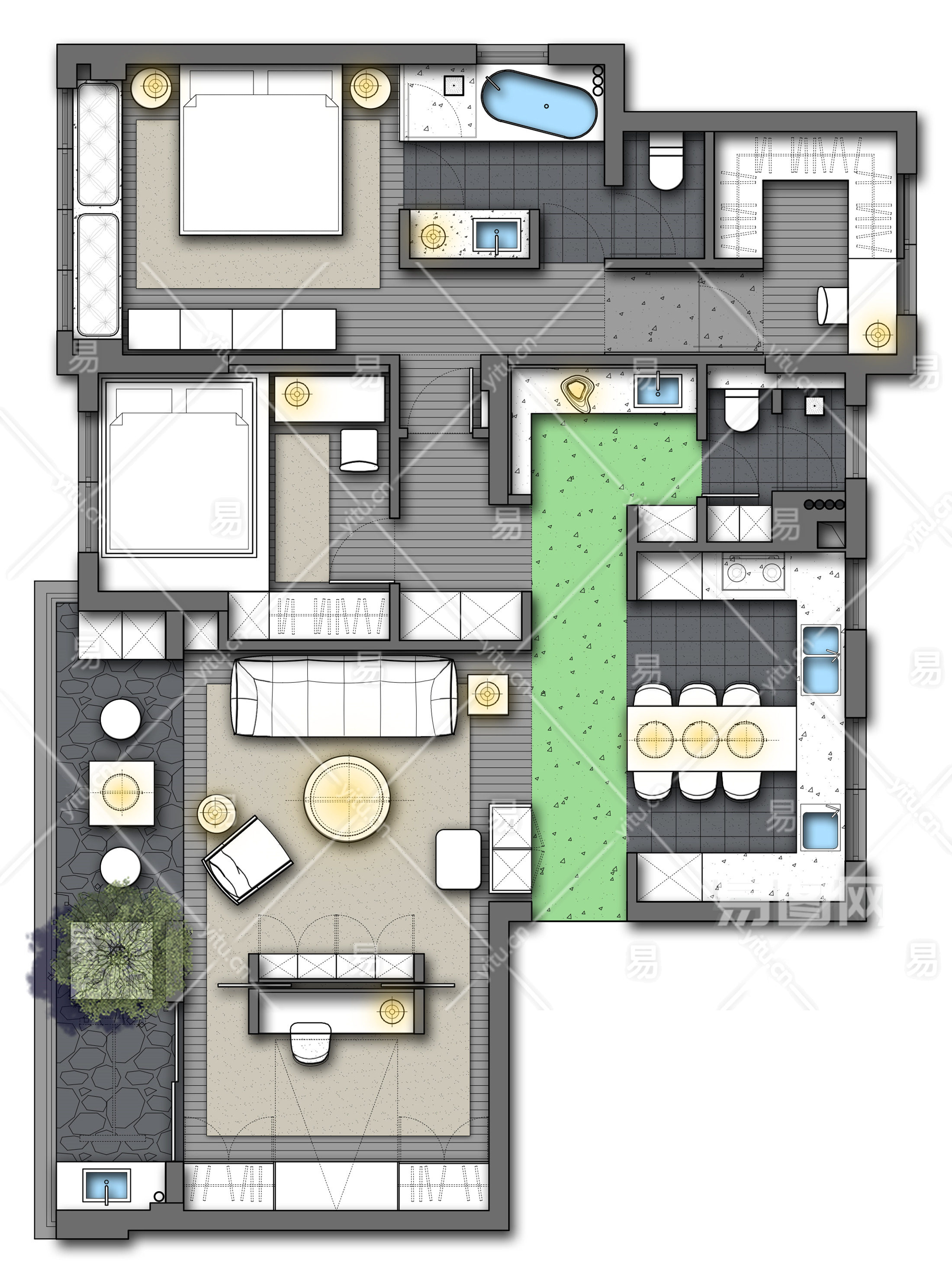 当前的位置:首页 > 室内CAD图纸 > cad > 建筑方案设计 > 居住建筑图纸 > 【CAD图纸】四居室CAD户型方案+PSD彩平