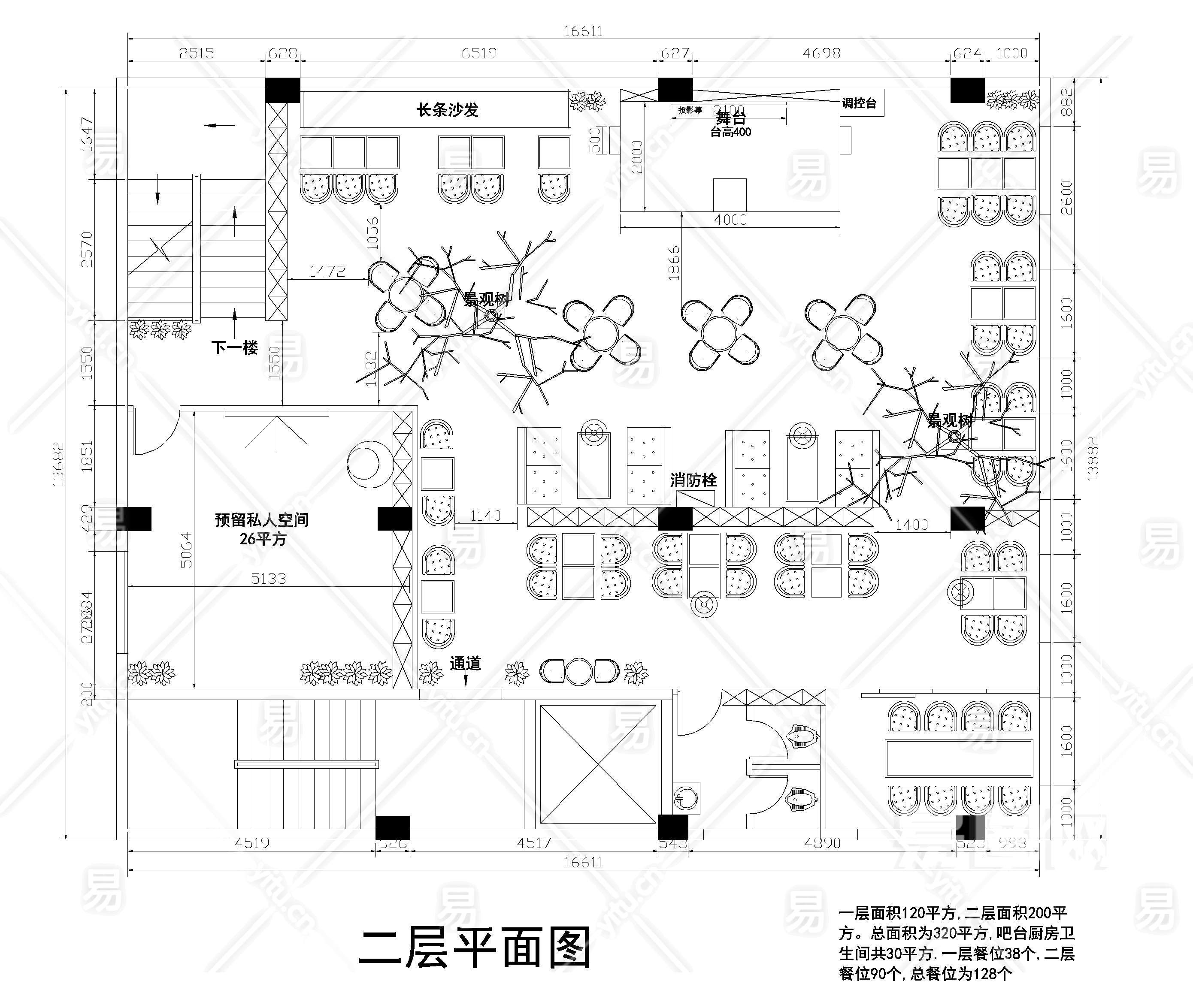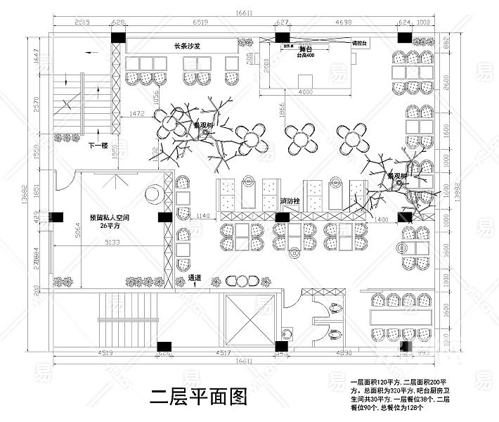 当前的位置:首页 > 室内CAD图纸 > cad > 建筑方案设计 > 商业建筑图纸 > 【CAD图纸】320㎡咖啡店CAD平面方案