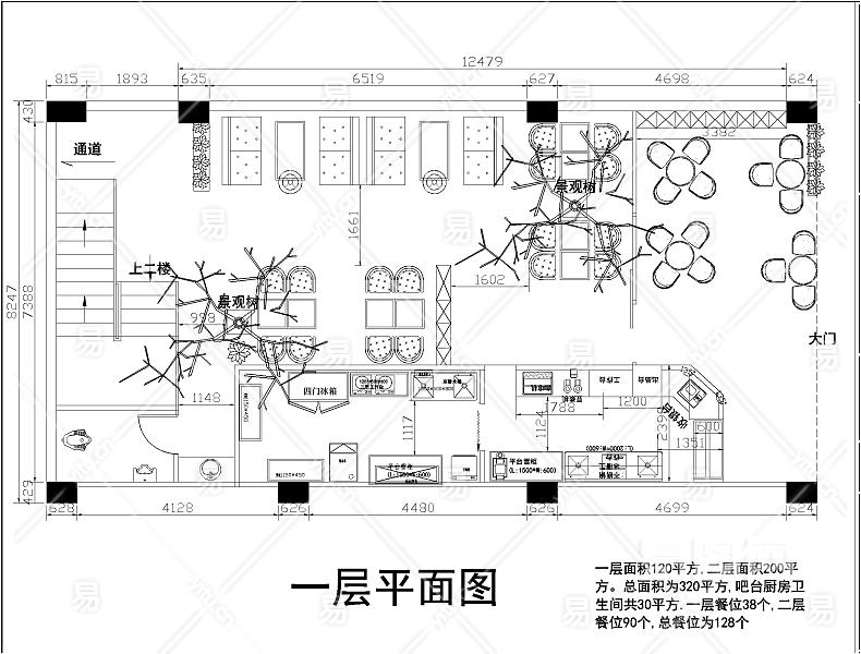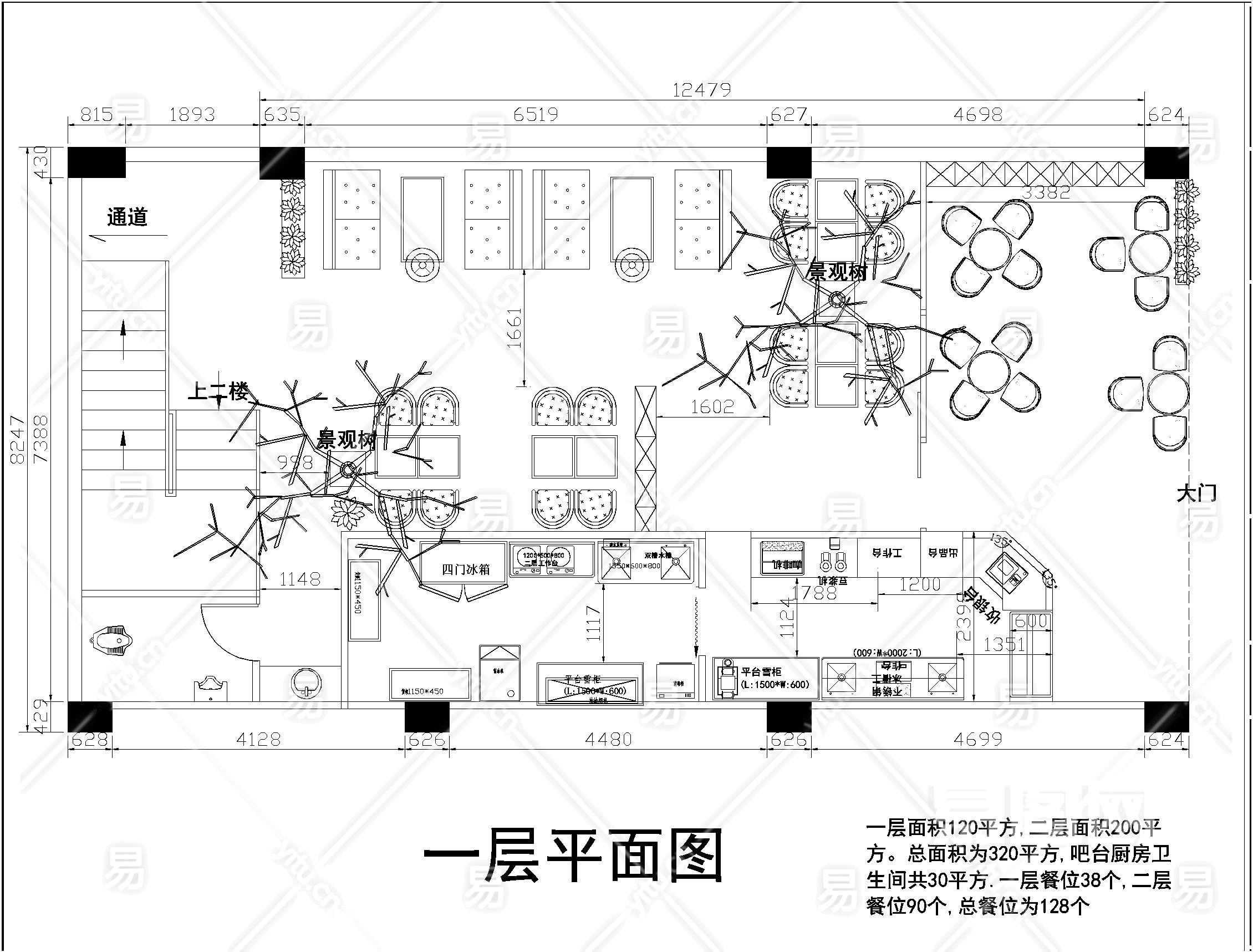 【CAD图纸】320㎡咖啡店CAD平面方案