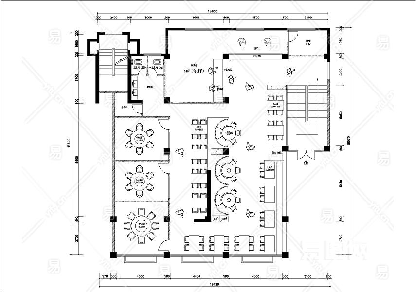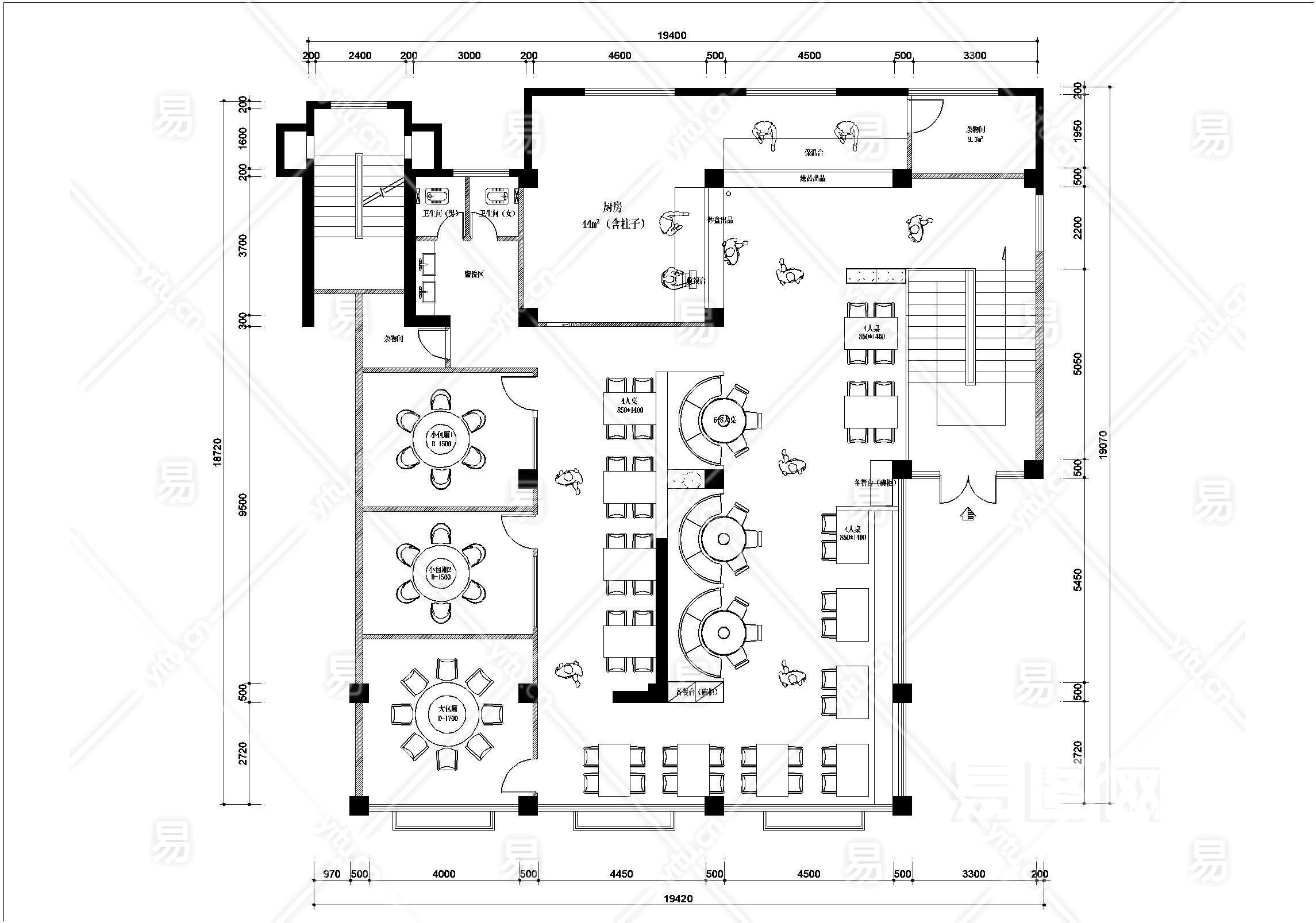 当前的位置:首页 > 室内CAD图纸 > cad > 建筑方案设计 > 商业建筑图纸 > 【CAD图纸】某中餐厅平面CAD方案