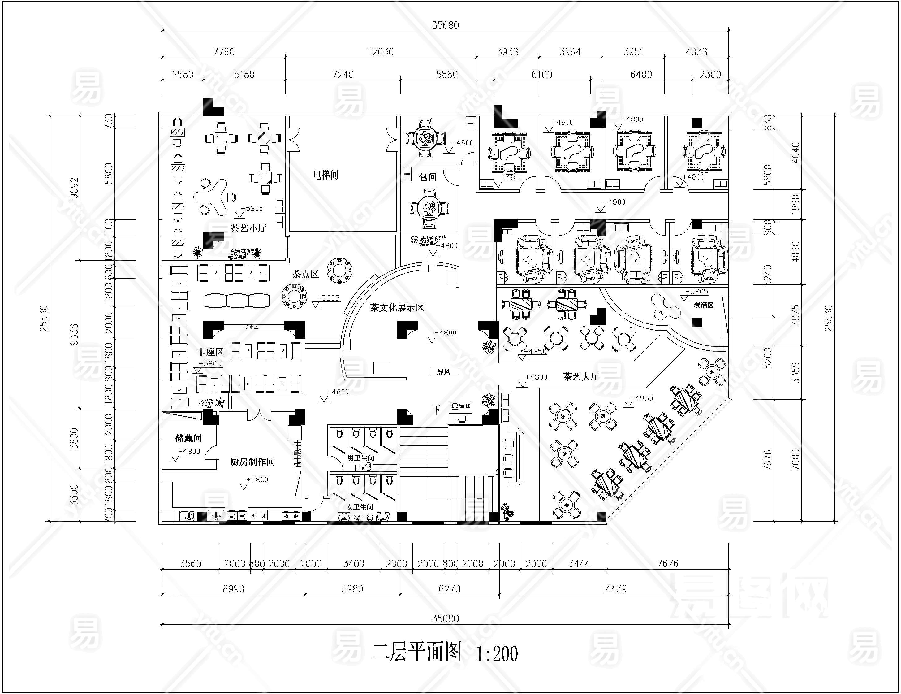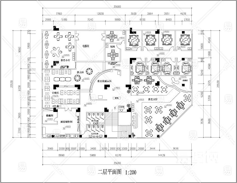 【CAD图纸】茶艺馆设计平面CAD方案