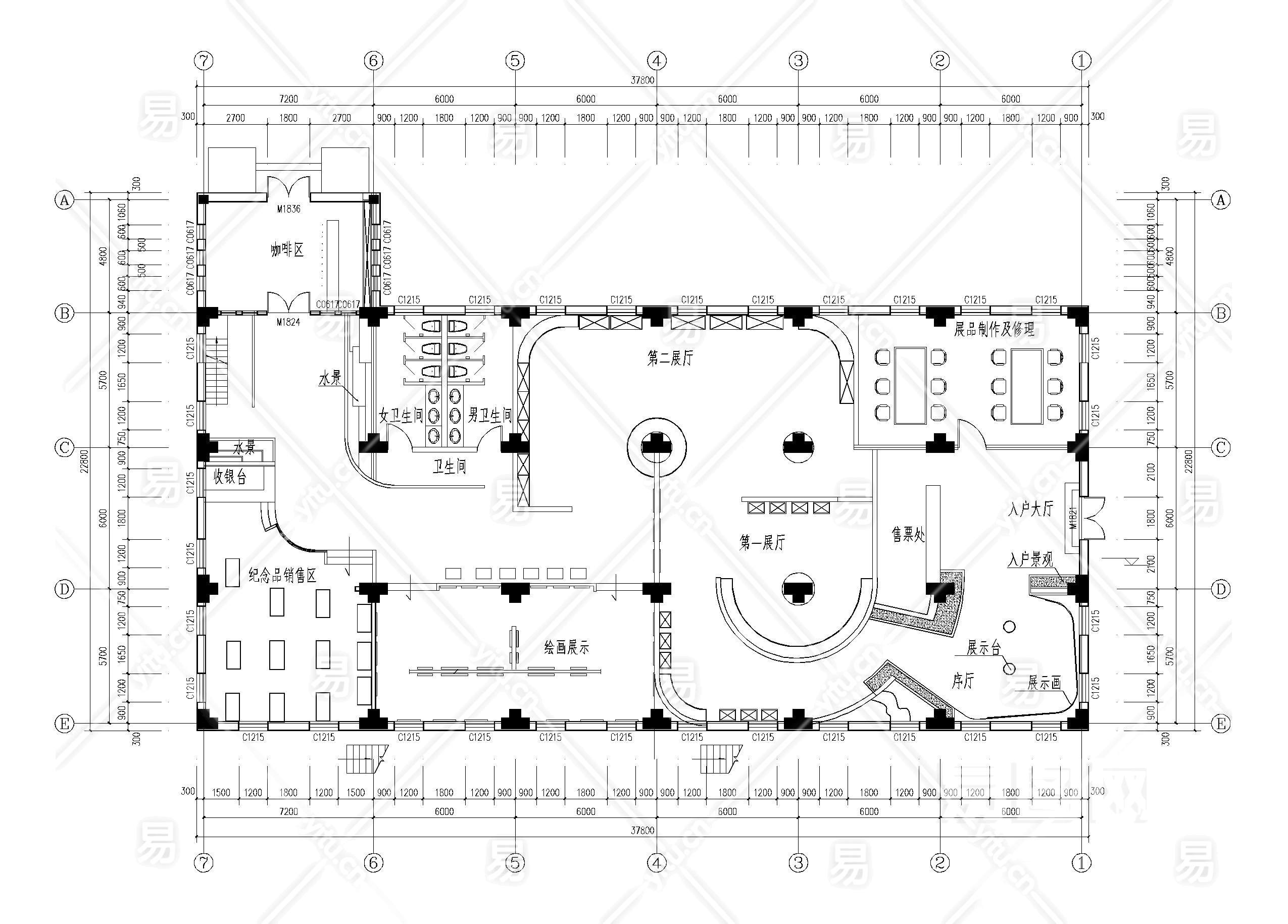 当前的位置:首页 > 室内CAD图纸 > cad > 建筑方案设计 > 文化建筑图纸 > 【CAD图纸】展厅平面CAD方案