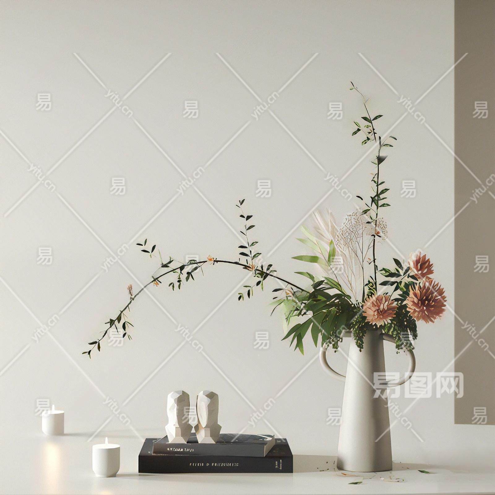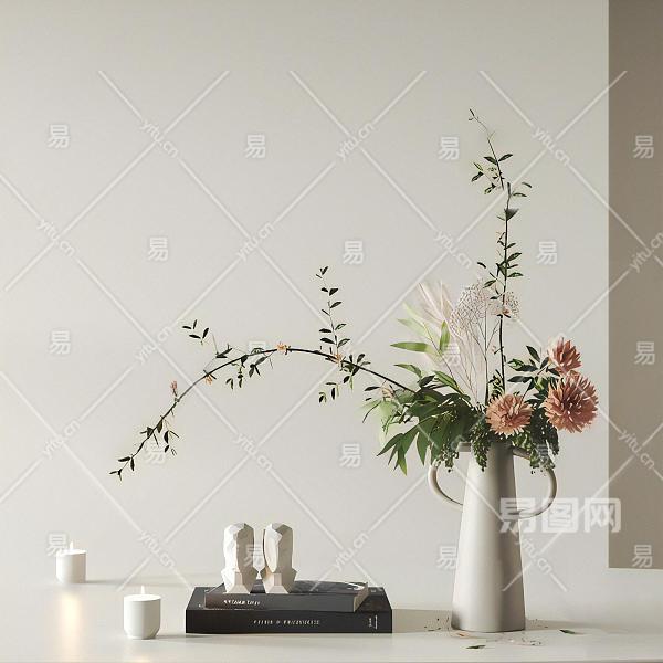 现代摆件组合 花瓶 书籍摆件