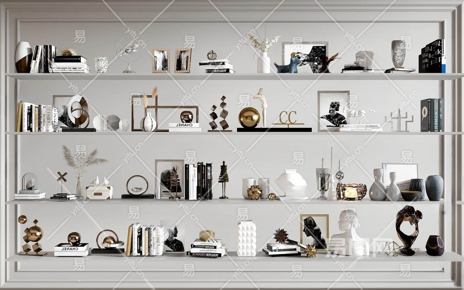 19现代摆件组合,瓶罐器皿,装饰画,花瓶,雕塑摆件SU模型