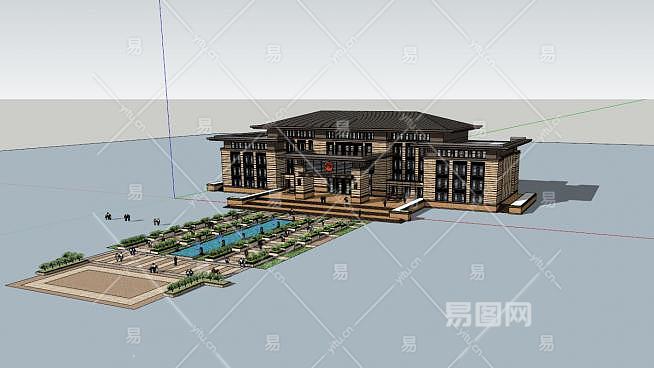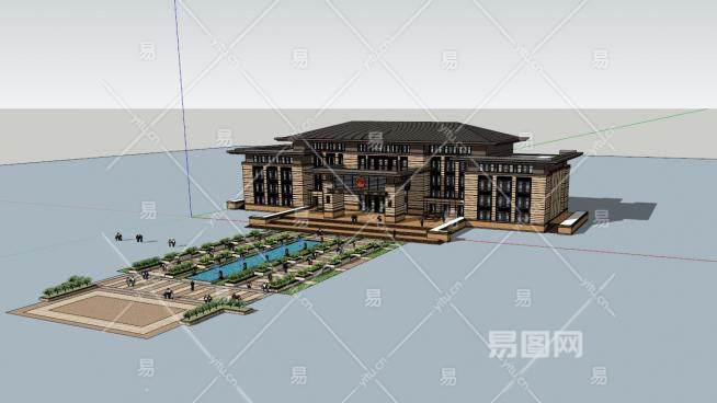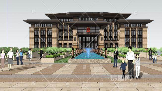 现代草原风办公楼法院建筑SU模型下载_sketchup草图大师SKP模型