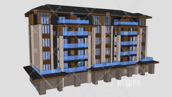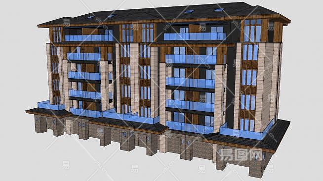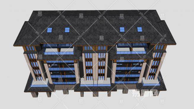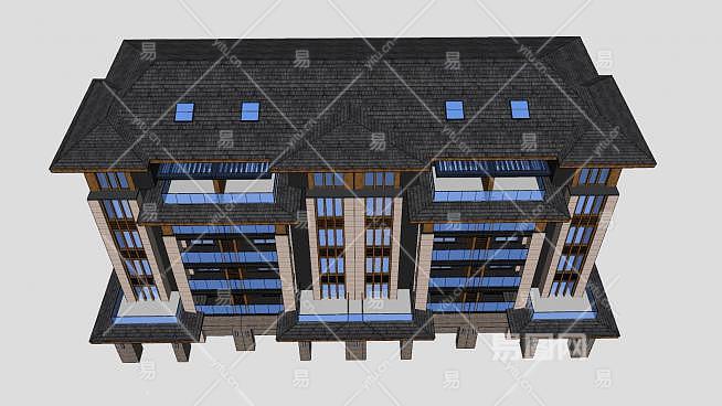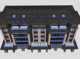 后现代中式办公楼建筑SU模型下载_sketchup草图大师SKP模型